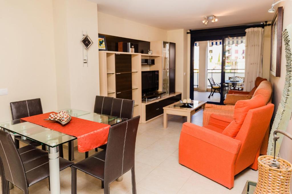 El apartamento cuenta con 2 dormitorios, 2 baños, ropa de cama, toallas, TV de pantalla plana, zona de comedor, cocina totalmente equipada y patio con vistas a la piscina.