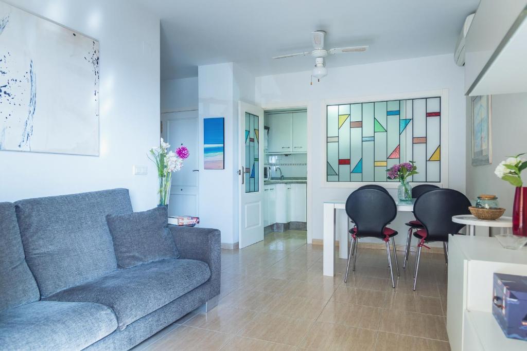El Apartamento Guardamar de la Safor dispone de balcón con vistas al jardín, piscina al aire libre y salón compartido. Se encuentra en Daimuz, cerca d