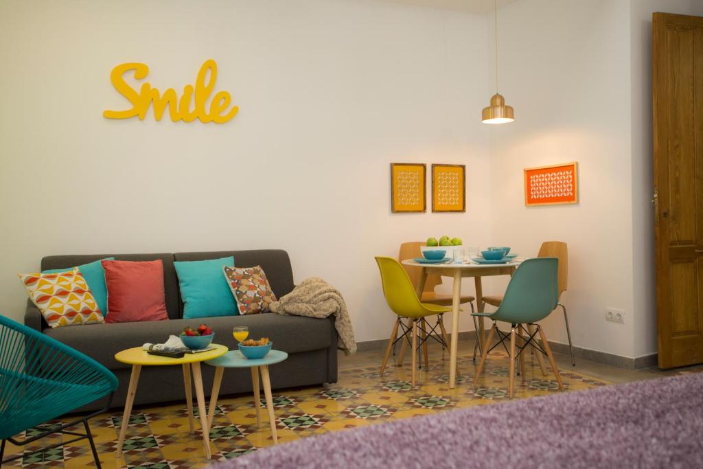 Este precioso loft está situado en un barrio histórico en el centro de Valencia, a menos de 3 minutos a pie del Ayuntamiento, el casco antiguo y la principal zona comercial de la ciudad (Calle Colón) El apartamento está situado en un 1 º piso sin ascensor. Totalmente equipado: Wifi Gratis! ADSL 30Mb y aire acondicionado, Las ventanas tienen el sistema de doble acristalamiento "Climalit" que hacen del apartamento un espacio ideal para descansar. El apartamento es totalmente NUEVO, ya que es un edificio antiguo completamente reformado, con el aspecto original del edificio. Se ha recuperado un arco de mampostería de piedra y ladrillo y las vigas de madera del techo. El apartamento está en una esquina entre dos calles, por lo que tiene el privilegio de contar con 2 balcones y una ventana, dando la sensación de estar en una terraza cubierta sobre la calle. Este espacio hace que sea muy luminoso y agradable. Es espacioso para un apartamento de una habitación y se ajusta para 4 personas. Tiene una cama de matrimonio de 1'60m x 2'00m, y un cómodo sofá-cama doble en el salón de 1'40m x 200m. El cuarto de baño ha sido diseñado con especial atención, con materiales de calidad.