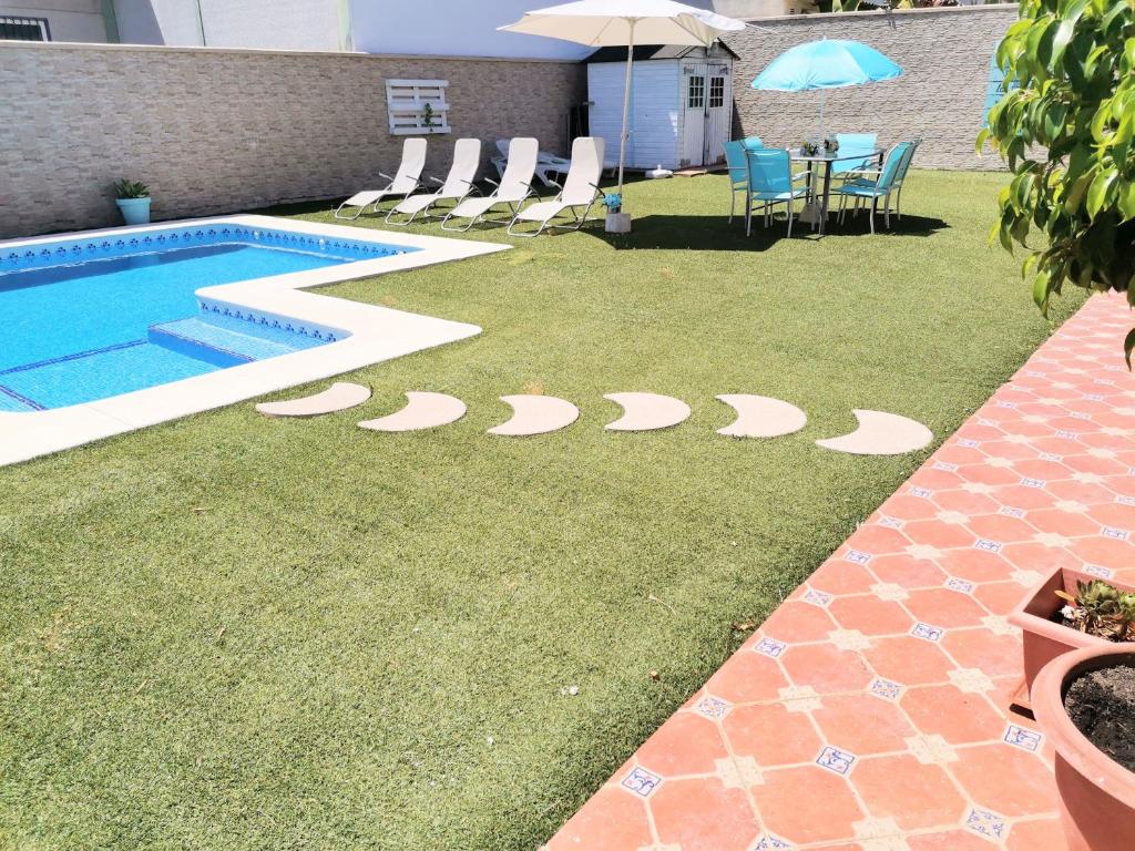La casa del Gus está situada en Espartinas y cuenta con piscina privada. Hay WiFi gratuita. Esta casa consta de 4 dormitorios, sala de estar y cocina