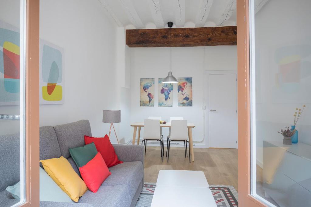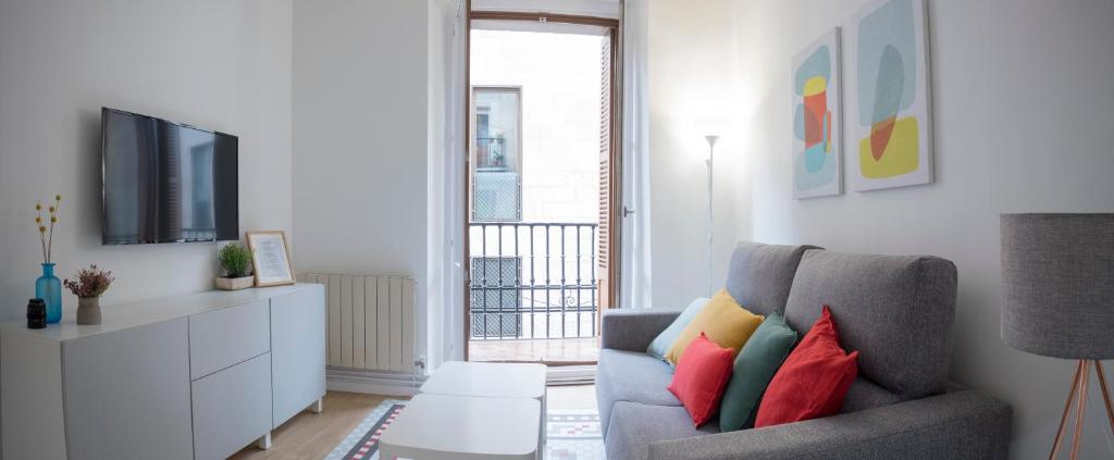 Precioso y moderno apartamento en el casco viejo de Pamplona, en la mita de la Cuesta de Santo Domingo. Primer piso sin ascensor. Consta de dormitorio; amplio salón con muebles modernos, un gran balcón , mesa de comedor, confortable sofá cama, TV de última generación y WIFI gratuito; cocina completa y baño con plato de ducha. Cuenta con todo lo necesario para disfrutar de una agradable estancia. Pese a que el apartamento se ubica en el mismo centro del casco viejo de Pamplona, su localización es perfecta para pasar unas tranquilas vacaciones. Estarás a menos de un minuto andando de la Plaza del Ayuntamiento, de la Plaza del Castillo, así como del Museo de Navarra, la Catedral y del epicentro de la zona de bares de pintxos, muy cerca de todos los puntos de interés turístico de la ciudad y en pleno recorrido del Encierro y del Camino de Santiago.