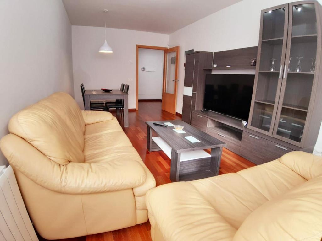 Piso nuevo muy luminoso en urbanización tranquila con garaje y piscina gratis. El piso dispone de todos los elementos básicos para disfrutar de una estancia inmejorable. El complejo dispone de piscina comunitaria y amplias zonas comunes. A 10 minutos andando de la plaza mayor y del casco antiguo, donde podrás disfrutar del impresionante arte románico de la ciudad. Además, para hacer una estancia más cómoda y completa: DESAYUNO INCLUIDO.