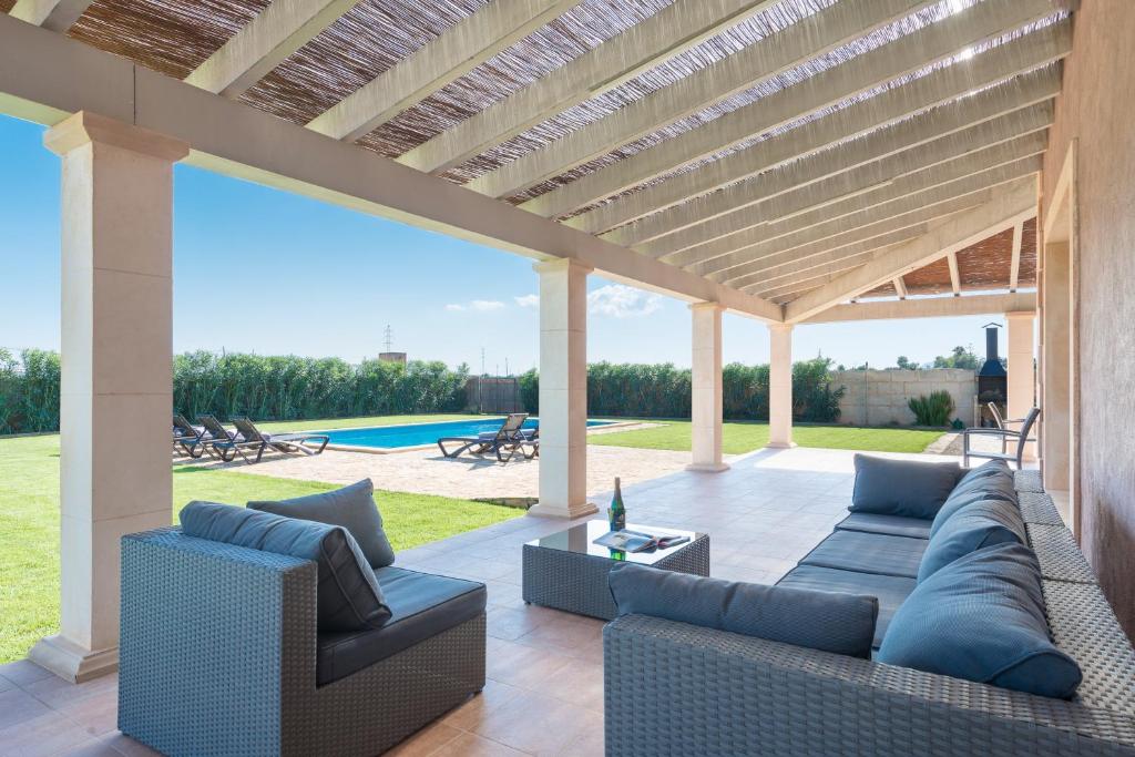 La villa dispone de terraza. Los huéspedes pueden disfrutar de la piscina cubierta del Es Moli d'en Sion.