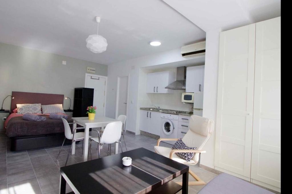 Es un precioso Estudio-Loft recientemente modernizado, cómodo, agradable, muy luminoso y decorado con un moderno diseño. Situado en la Plaza de Madrid, junto al Estadio de fútbol y haciendo esquina con la Avenida y a cinco minutos andando de la playa Victoria. Tiene una sola habitación salón-dormitorio con un gran ventanal al fondo, un cama doble y además un sofá cama. Pueden dormir 4 personas. La cocina en barra americana está completa con vitrocerámica, frigorífico, lavadora, microondas y todos los enseres necesarios. Tiene un baño completo . Dispone de Aire Acondicionado. Muy bien comunicado con parada de autobús urbano e interurbano en la puerta y cerca de la Estación de tren que está soterrado. No necesita coche. Acceso minusválido. Es una zona con muchos comercios, junto a Supermercado Día%. Muy cerca de las Facultades de Enfermería y Fisioterapia y del Hospital Puerta del Mar.