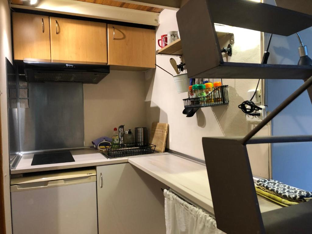 Pequeño estudio completo, en vivienda unifamiliar. Está situado en planta baja con ventanas a un pequeño patio arbolado. La vivienda está en un barrio muy tranquilo y bien comunicado, situado detrás del Hospital de Sant Joan de Deu. Cerca de la vivienda hay un hotel, restaurante, supermercado Lidel y panadería. Dispone de baño completo, pequeña cocina office. La cama está elevada en un altillo. Dispone de wifi y TV