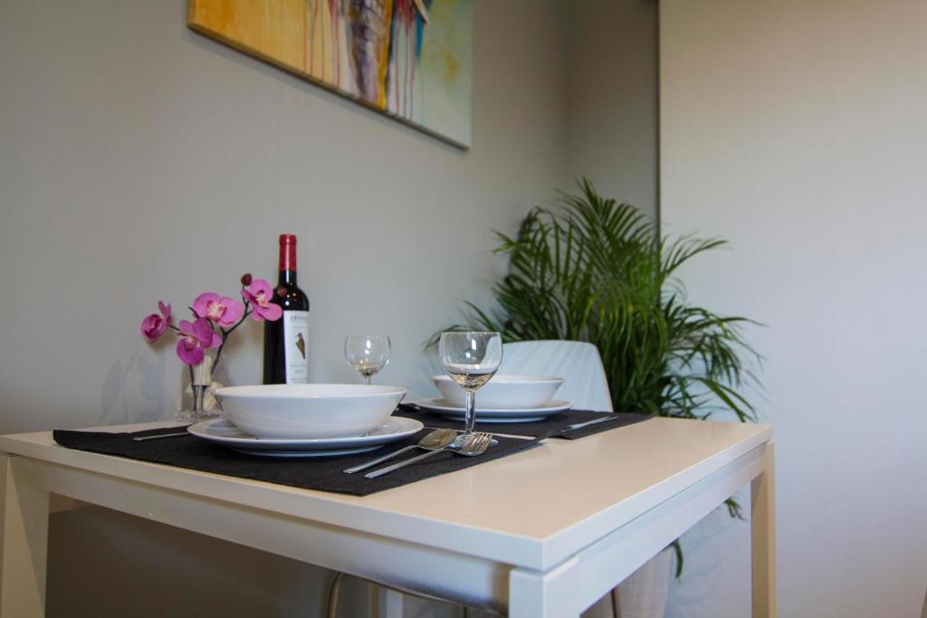 Pros: Nos dejaron hacer check in antes de la hora. El apartamento moderno y limpio. Fácil de aparcar en el barrio.