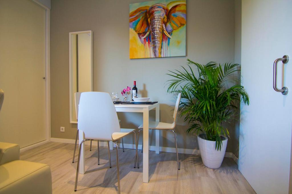 Pros: El estudio era chiquito pero lo que esperábamos, al final tenía de todo, todo bastante nuevo y muy limpio, a 10 minutos andando de la zonas de bares cercana al río. Y una piscina estupenda en la que estuvimos solos todos los días. Se aparca bien por la zona .