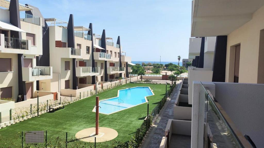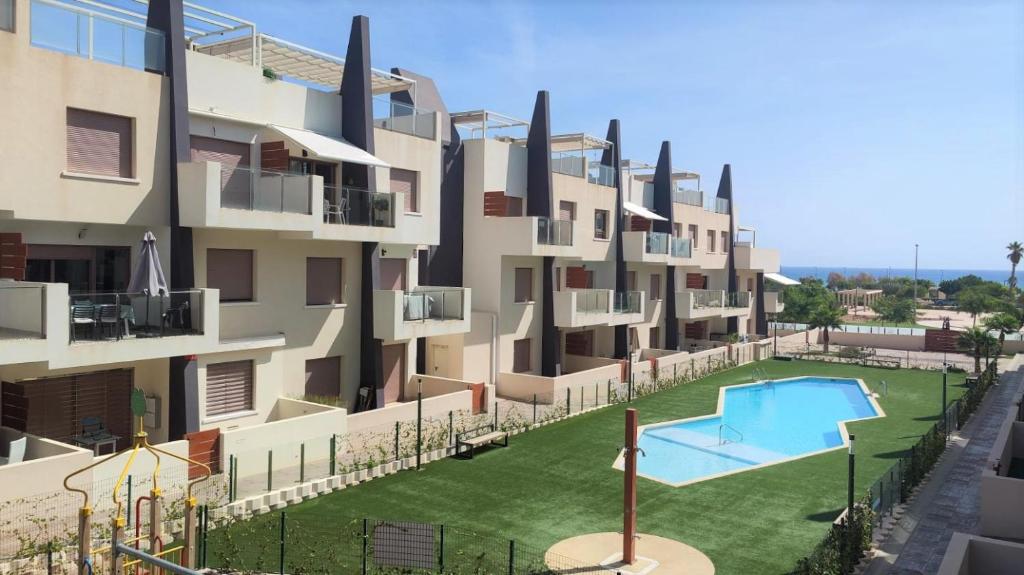 El Exótico apartamento a 250 metros de la playa en Torre de la Horadada se encuentra en La Horadada y ofrece alojamiento con aire acondicionado, piscina privada, vistas a la piscina y balcón. Ofrece vistas al jardín, terraza y piscina.