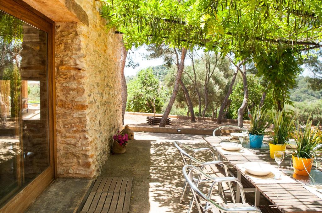 En el exterior hay una barbacoa y una terraza con sombra donde se puede comer al aire libre. También hay una hamaca y varias tumbonas.