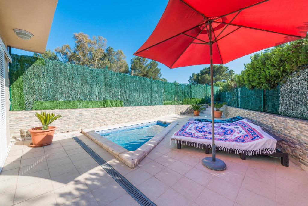 La Casa Rotonda de Aucanada está situada en el centro, muy cerca del puerto de Alcúdia, y es ideal para todos aquellos que disfrutan estando en medio de la acción. La casa de vacaciones, dotada de mobiliario moderno, está distribuida en 2 plantas y dispone de un salón-comedor, una cocina bien equipada, 3 dormitorios y 2 baños, con capacidad para 7 personas. También está equipada con Wi-Fi, aire acondicionado, una trona a petición, una cuna con coste añadido y un colchón adicional. Desde la terraza, que tiene una maravillosa vista al puerto, podrá disfrutar de sus vacaciones en la piscina de 10 m². Restaurantes y tiendas, así como el puerto y la bahía, con sus playas de arena fina, están a 10 minutos a pie. La casa de vacaciones también está convenientemente situada cerca de la carretera de acceso al puerto y se puede llegar a pintorescos pueblos como Alcúdia y Pollença en 5 y 15 minutos en coche.