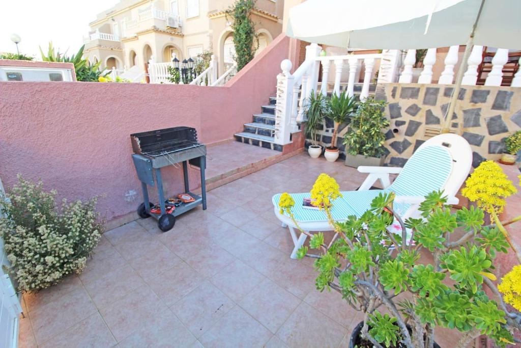 Bungalow con terraza, piscina y vistas al mar está en Gran Alacant y dispone de alojamiento con piscina privada y wifi gratis. El alojamiento, que se encuentra a 16 min a pie de Playa de Los Arenales del Sol, ofrece piscina de temporada al aire libre y parking privado gratis. El apartamento cuenta con terraza y vistas al mar, y dispone de 3 dormitorios, una sala de estar, TV de pantalla plana, una cocina equipada con nevera y horno, y 1 baño con bidet. Hay toallas y ropa de cama en el apartamento. Playa del Carabassí está a 16 min a pie del alojamiento, y Playa La Ermita está a 2,2 km. El aeropuerto más cercano (Aeropuerto de Alicante – Elche Miguel Hernández) está a 9 km.