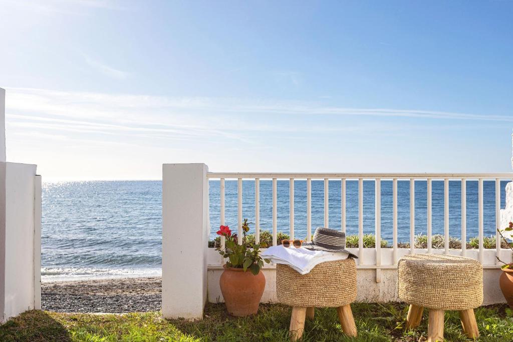 Esta acogedora casa de un dormitorio ha sido totalmente reformada y decorada con todo lujo de detalle. Tiene acceso directo al mar y cuenta con unas de las mejores vistas de la Costa del Sol. Tiene dos amplias terrazas, una en la entrada principal y la otra en la parte trasera, con vistas al mar y acceso a un pequeño jardín privado con una puerta directa a la playa.