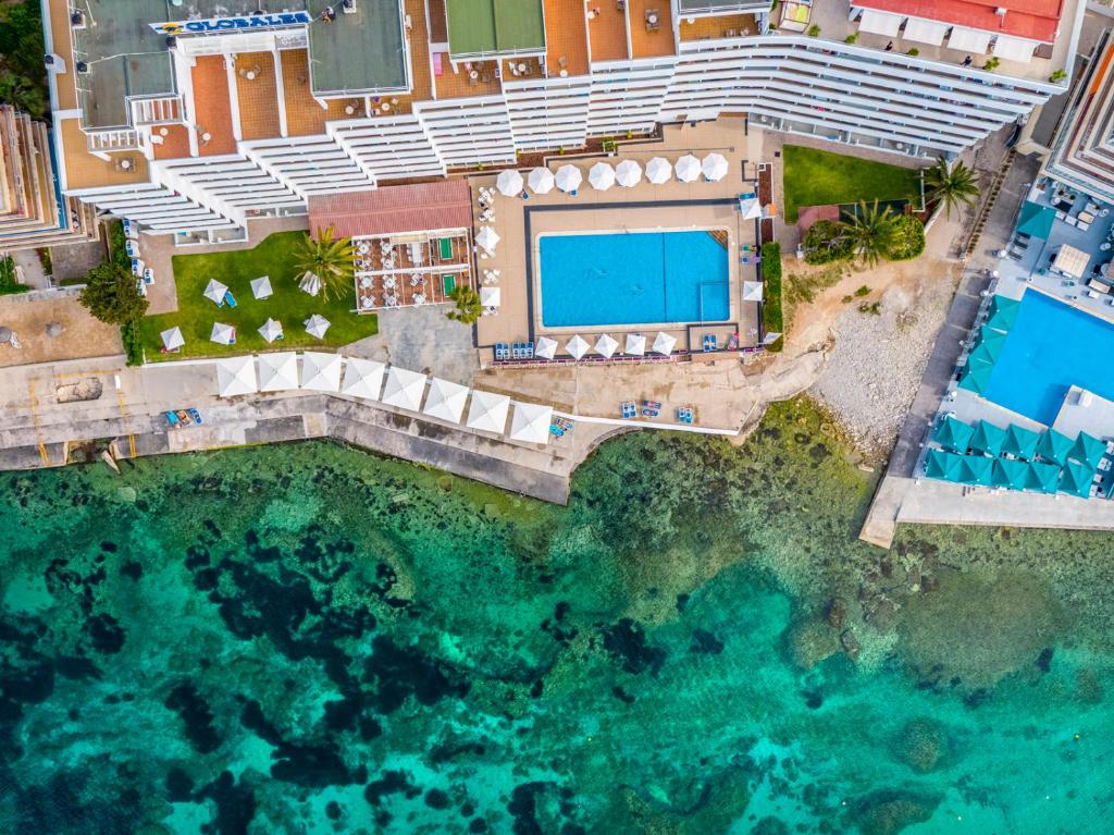 La piscina cuenta con tumbonas y goza de vistas preciosas al Mediterráneo. Además, hay un bar que sirve cócteles deliciosos junto a la piscina de los Apartamentos Globales Verdemar.