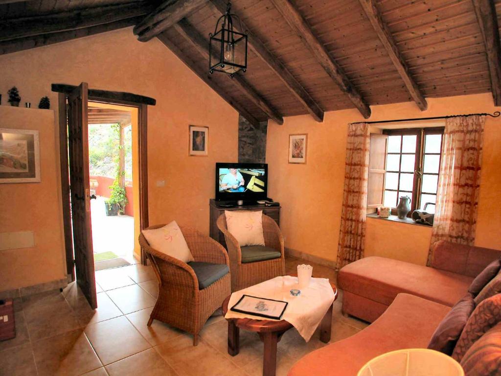 Cottage Casa Amarilla is located next to a Barranco is the restored Finca house, in the outskirts in a small original mountain village on the sunny west side of the island with stunning views. Tenerife Cottage Casa Amarilla includes 1 room, 1 bathroom, living room with sofa bed, kitchen with dining area and dishwasher and 2 terraces. Community sauna house, -Solar heated swimming pool and whirlpool with 38 ° C warm water. Roof terrace. Wine Bodega for Finca festivals in a natural cave. Satellite TV system. Satellite TV radio. Internet via W-LAN. Heater. Hiking trails from the house.