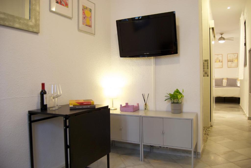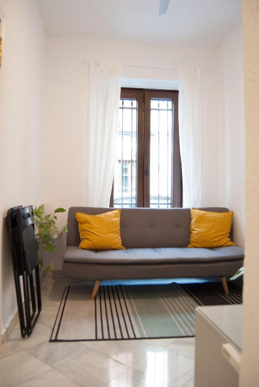 El apartamento se encuentra en pleno centro de Sevilla, en la zona de la Alameda de Hércules, muy cerca de la Calle Feria, zona con innumerables posibilidades de ocio. El apartamento es ideal para dos personas, tiene todo lo necesario para pasar unos días en Sevilla. Se encuentra en un bajo de un edificio de dos plantas, consta de un dormitorio con cama de 1,35x1,90m, cocina office perfecta para comidas sencillas, salón y baño. El salón tiene una ventana a la calle (con doble acristalamiento) y tanto el dormitorio como el pasillo tienen ventanas que dan a un pequeño patio. Dispone de ropa de cama y toallas para los huéspedes. Nuestro apartamento no está climatizado, NO TIENE AIRE ACONDICIONADO NI CALEFACCIÓN.