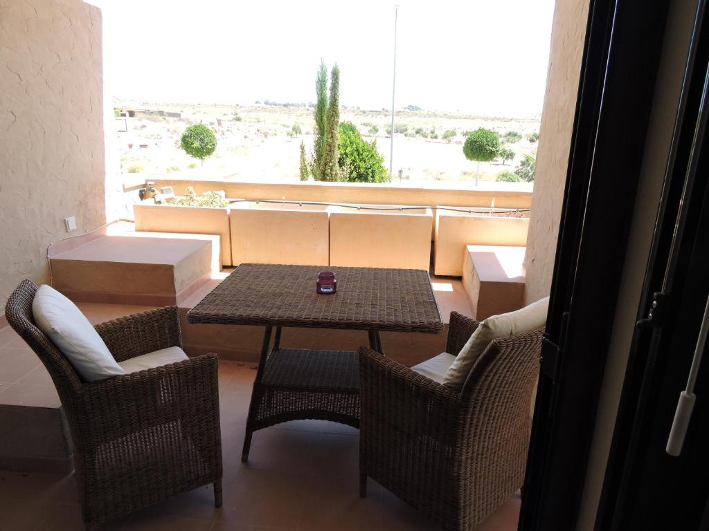 HL 010 3 bedroom apartment on HDA Golf Resort se encuentra en Fuente Alamo, en la región de Murcia, y tiene balcón y vistas a la piscina. El alojamiento, que está a 30 km de Estación de tren de Murcia, dispone de terraza y parking privado gratis. Este apartamento con aire acondicionado consta de 3 dormitorios, una sala de estar, una cocina totalmente equipada con nevera y hervidor, y 2 baños con bidet y ducha. Hay toallas y ropa de cama en el apartamento. Hay piscina al aire libre en el propio alojamiento, y se puede practicar snorkel cerca. Puente Romano está a 31 km del alojamiento, y Mar Menor Golf Resort está a 31 km. El aeropuerto (Aeropuerto internacional Región de Murcia) está a 8 km, y el alojamiento ofrece servicio de traslado de pago para ir o volver del aeropuerto.