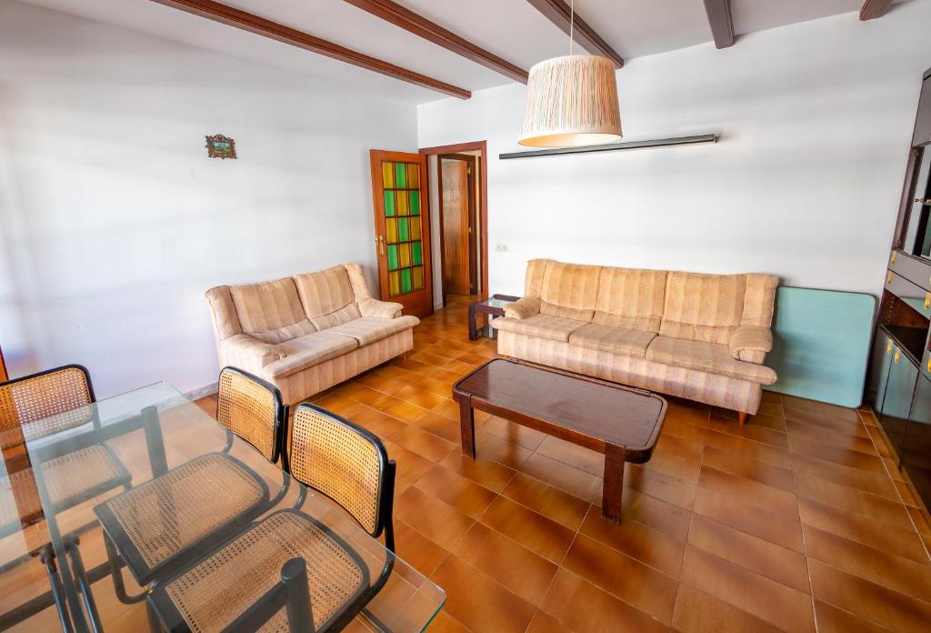 Bonito apartamento con capacidad para 7 personas en la sexta planta del edificio con ascensor. La reserva incluye la ropa de cama, las toallas y la limpieza. Dispone de comedor salón, cocina independiente totalmente equipada, 3 habitaciones con una cama de matrimonio, tres individuales,un sofá cama doble en el salón, dos baños uno de ellos con bañera y balcón donde podrá disfrutar de los cálidos días de verano. Su mayor encanto es su ubicación ya que se encuentra a tan solo 50 metros de la playa y muy cerca de todos los servicios, ideal para parejas, aventureros, viajes de negocios y familia con hijos. .