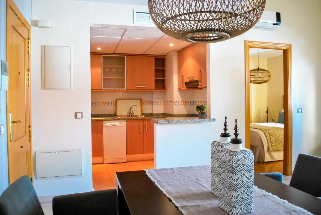 El apartamento cuenta con aire acondicionado, 1 dormitorio independiente, baño con secador de pelo, zona de estar y sala de estar.