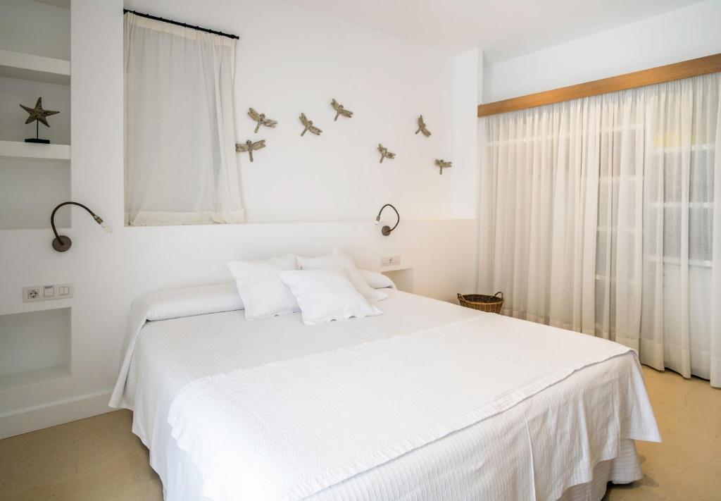 Todas las habitaciones del Hotel Es Marès presentan un elegante diseño blanco y detalles decorativos de inspiración playera local. Todas tienen ventilador de techo y baño moderno con bañera o ducha de hidromasaje.