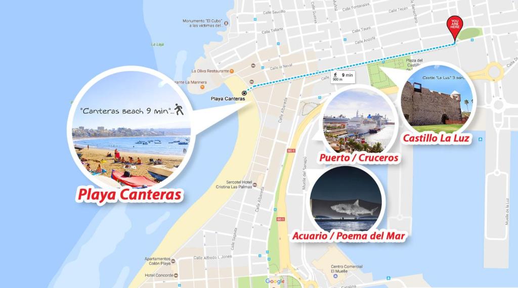 El puerto de Las Palmas se encuentra a 2,5 km del House Canteras Castillo de la Luz, mientras que el centro comercial El Muelle está a 3,1 km.