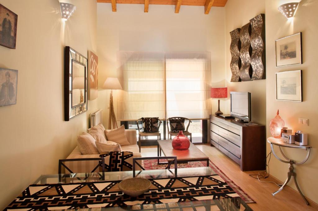 Apartamentos y adosados de lujo con 2 habitaciones amplias, 2 baños con secador de pelo en 1 (en el caso de los adosados sólo 1 baño, con secador de pelo), cocina equipada y de tipo americana con salón en todos salvo en el apartamento P que tiene la cocina independiente. Todo bien equipado, cuidadosamente decorado a través de un estupendo equipo de decoración, y con WIFI. Salón con TV y dvd. Todas las propiedades disponen de calefacción. Se da ropa de cama y toallas en todas las propiedades. Las viviendas están preparadas para la estancia con bebés, y para minusválidos. En el caso de los bebés existe trona, cuna, bañera de bebés y protección de enchufes. Tanto los apartamentos como los adosados tienen plaza garaje con acceso hasta el mismo por ascensor directamente.
