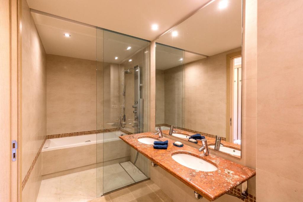 El apartamento tiene 2 dormitorios, TV de pantalla plana con canales vía satélite, cocina equipada con lavavajillas y microondas, lavadora y 2 baños con bañera de hidromasaje.