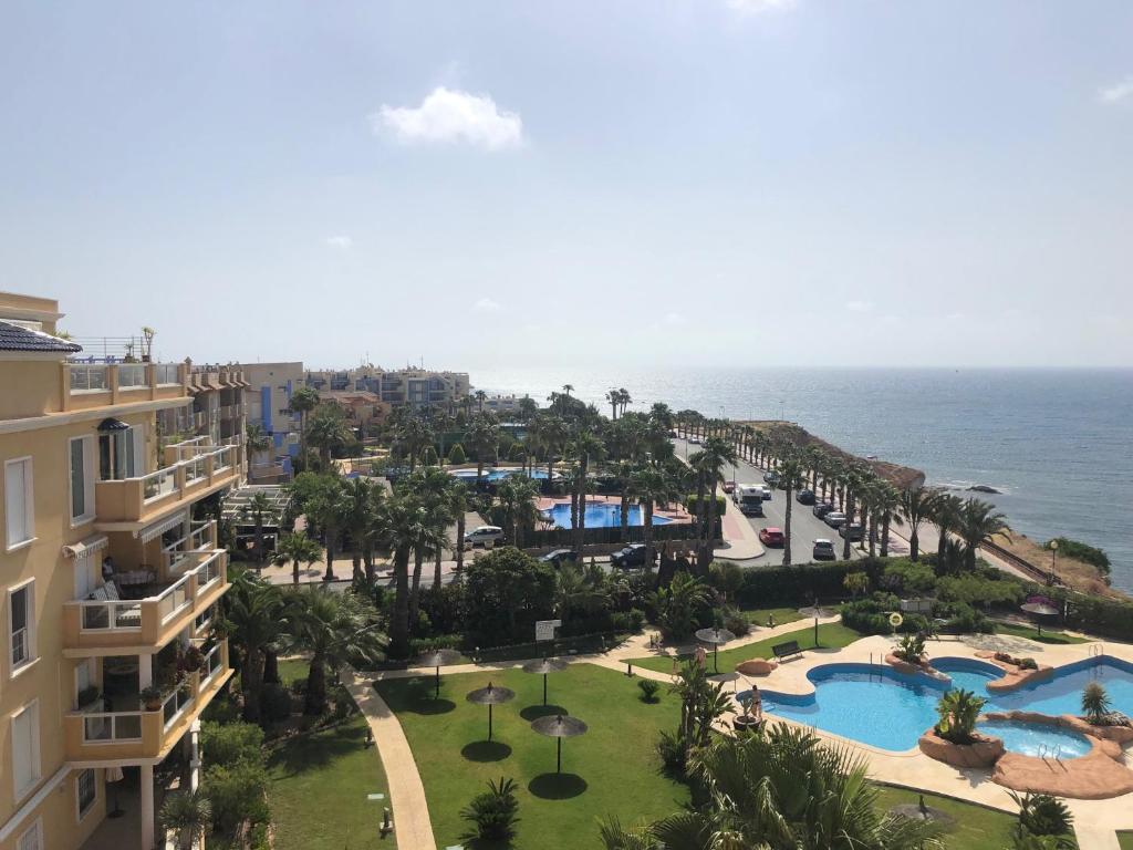 Las Calitas - Cabo Roig se encuentra en Orihuela y ofrece alojamiento con aire acondicionado, piscina privada, vistas a la piscina y balcón. Este establecimiento está situado en primera línea de playa y cuenta con piscina al aire libre, jardín y terraza.