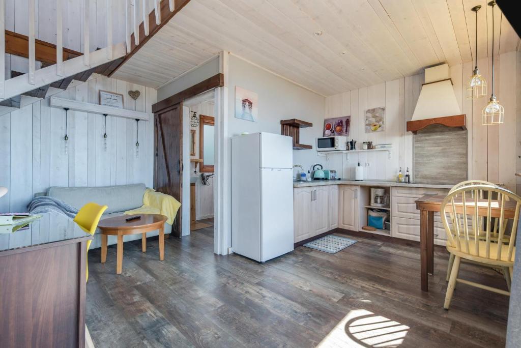 La casa incluye 1 dormitorio y cocina con microondas, nevera y hervidor de agua.