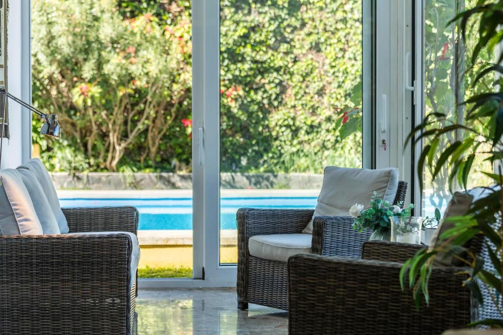 La villa tiene 5 dormitorios, TV y cocina totalmente equipada con lavavajillas, microondas, lavadora, nevera y horno.