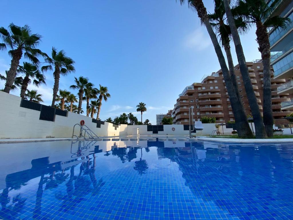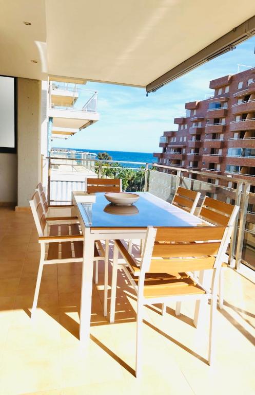 Las Terrazas - Primera línea de playa con Netflix, Disney, Movistar con todo el fútbol, series, cine y Prime Video, que está en Oropesa del Mar, ofrece alojamiento con piscina privada, vistas al mar y balcón. Este alojamiento con aire acondicionado está a 2 min a pie de Playa de Les Amplaries y ofrece wifi gratis y parking privado en el propio alojamiento. El apartamento ofrece una terraza y vistas a la ciudad e incluye 2 dormitorios, sala de estar, TV de pantalla plana vía satélite, cocina equipada y 2 baños con bidet y ducha. Hay toallas y ropa de cama en el apartamento. Se puede disfrutar de un momento de relax en el jardín, ir a la piscina al aire libre, o practicar senderismo o ciclismo. Playa de Moro de Gros está a 11 min a pie del alojamiento, y Ermita de Santa Lucía y San Benito está a 28 km. El aeropuerto más cercano (Aeropuerto de Castellón – Costa Azahar) está a 27 km.
