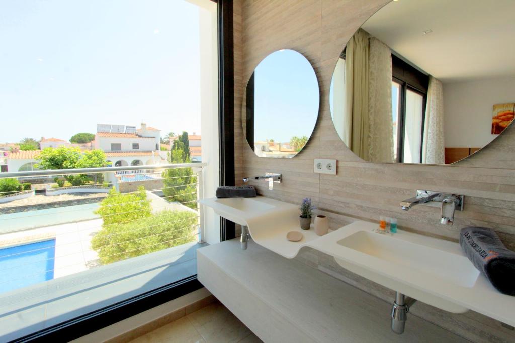 LEON INMO Villa Nicole - 10699 es un alojamiento con piscina de temporada al aire libre y terraza que se encuentra en Empuriabrava, a 1,8 km de Playa de la Rubina, a 1,8 km de Playa de Empuriabrava y a 1,9 km de Platja Petita. Esta villa dispone de piscina privada, jardín, zona de barbacoa, wifi gratis y parking privado gratis. Esta villa con aire acondicionado consta de 3 dormitorios, una sala de estar, una cocina totalmente equipada con nevera y cafetera, y 3 baños con ducha. Para mayor comodidad, el alojamiento puede ofrecer toallas y ropa de cama por un suplemento. Museo Dalí está a 17 km del alojamiento, y Campo de golf Peralada está a 17 km. El aeropuerto más cercano (Aeropuerto de Girona - Costa Brava) está a 66 km del alojamiento.