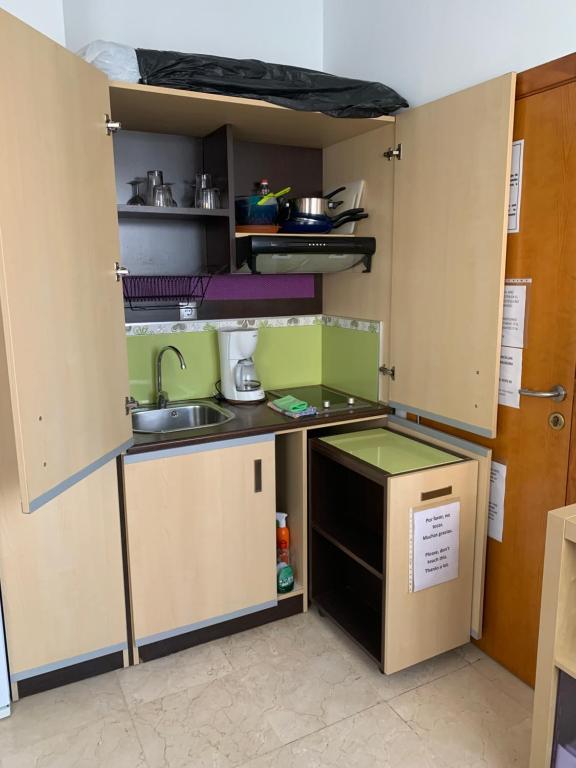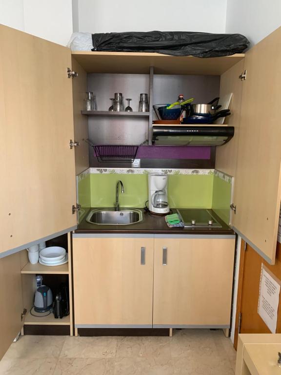 Apartamento con aire acondicionado, 1 dormitorio, TV de pantalla plana y cocina.