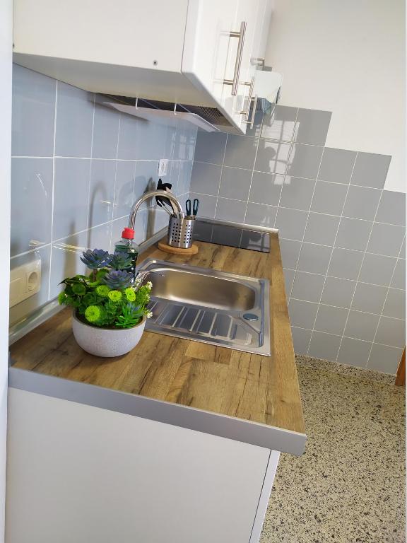 El apartamento cuenta con 1 dormitorio, TV de pantalla plana, cocina equipada con microondas y nevera, lavadora y baño con ducha.