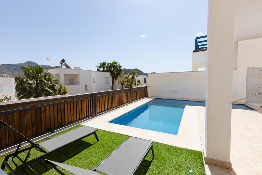 La Luminous Villa with terrace and salt water pool se encuentra en Níjar, a menos de 1 km de la playa de San José y a 2,1 km de la playa de los Genoveses, y ofrece piscina al aire libre y aire acondicionado. Esta villa cuenta con piscina privada, jardín, zona de barbacoa, WiFi gratuita y aparcamiento privado gratuito.
