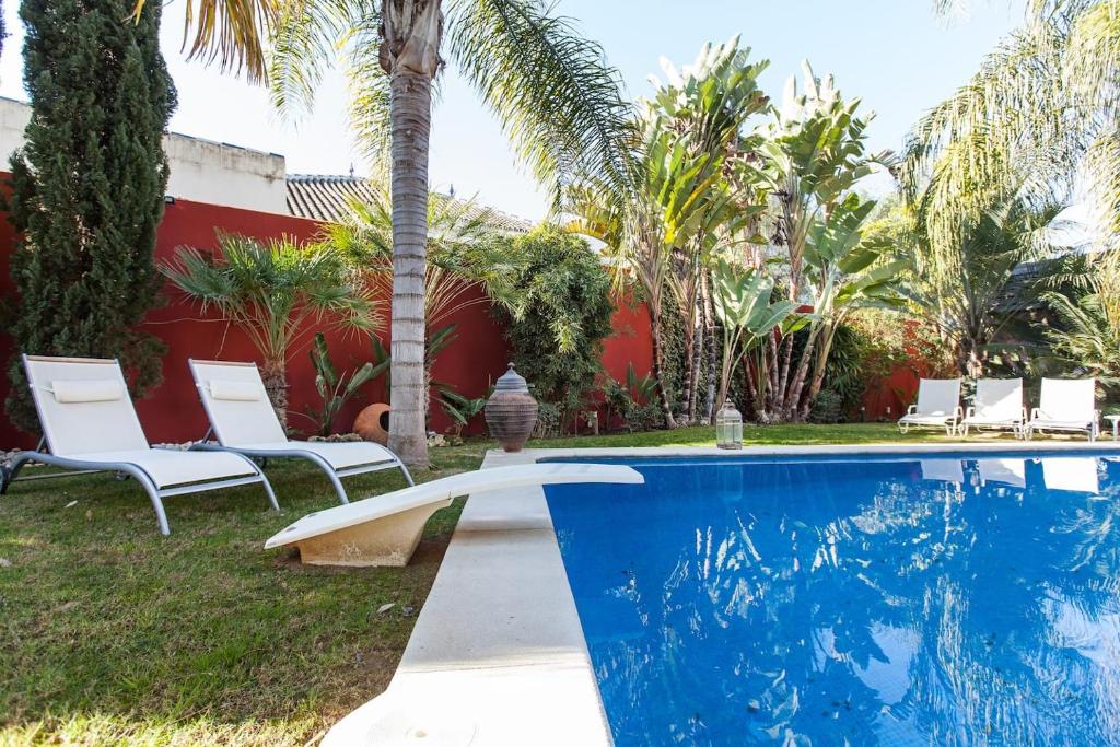 El Luxury house se encuentra en Mairena del Aljarafe, Andalucía, y ofrece un patio. Este chalet ofrece vistas al jardín, piscina, jardín y WiFi gratuita.