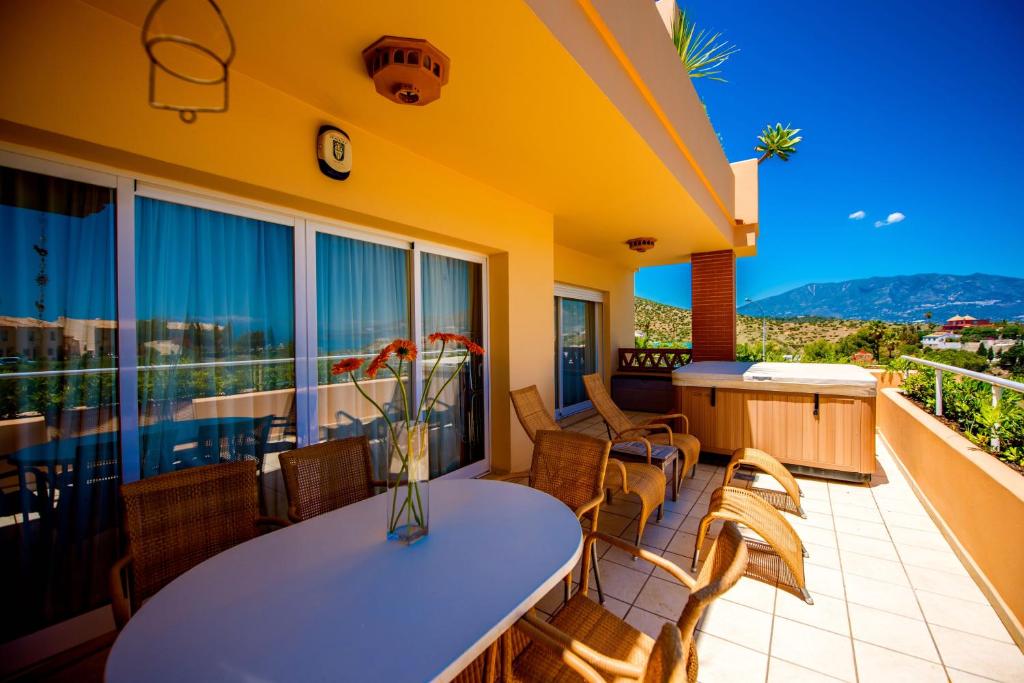 Holiday apartment for rent in Costa del Sol. Ref. 54929 Luxury holiday apartment for rent is located in Club La Costa World resort area only 5 min to the beach. With a maximum capacity of 6 guests, it has 2 bedrooms, 2 bathrooms, spacious living room and a 40 sq m terrace with stunning sea views. The building is gated and secure, with 24/7 CCTVs. 2 swimming pools with sun beds (including shallow ended children pool) and parking lot are available for Malibu residents. BEDS: King size bed in the Master bedroom 2 single beds (90 cm) in the second bedroom Extra bed for 1 person available for an additional fee Air conditioning, wifi. Gated parking in front of the building with assigned place. Modern, fully furnished apartment sits among exotic and lush tropical gardens, restaurants, bars with programmed nightly entertainment, a mini-market, amazing, huge swimming pools, kids' pools, and fun to ride free little train that connects all the areas of the resort, shuttling guests for free from one place to another. Damage deposit for this holiday apartment for rent is 200 euros. If the guests need help we are nearby to take care of it. One of the biggest shopping centre of Costa de...