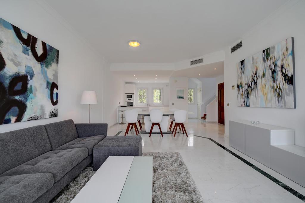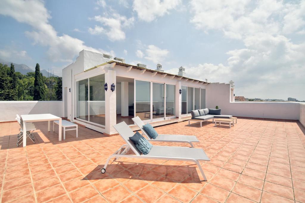 Spacious penthouse Duplex on Golden Mile 100m2 Roof Sun Terrace 180 DEGREE SEA VIEW - Close to Marbella and Puerto Banus se encuentra en Marbella y ofrece una terraza con vistas a la ciudad y al mar, además de piscina al aire libre abierta todo el año, centro de fitness y sauna. Este alojamiento ofrece ping pong, parking privado gratis, wifi gratis y acceso a un balcón. Este apartamento con aire acondicionado consta de 3 dormitorios, una sala de estar, una cocina totalmente equipada con nevera y cafetera, y 2 baños con bidet y ducha. Hay toallas y ropa de cama en el apartamento. El apartamento ofrece zona de juegos infantil. Se ofrece servicio de alquiler de bicicletas y zona de playa privada en Spacious penthouse Duplex on Golden Mile 100m2 Roof Sun Terrace 180 DEGREE SEA VIEW - Close to Marbella and Puerto Banus, y en los alrededores se puede practicar ciclismo. Cerca del alojamiento hay puntos de interés como Playa Casablanca, Playa de la Fontanilla y Playa Río Verde. El aeropuerto más cercano (Aeropuerto de Málaga) está a 57 km.