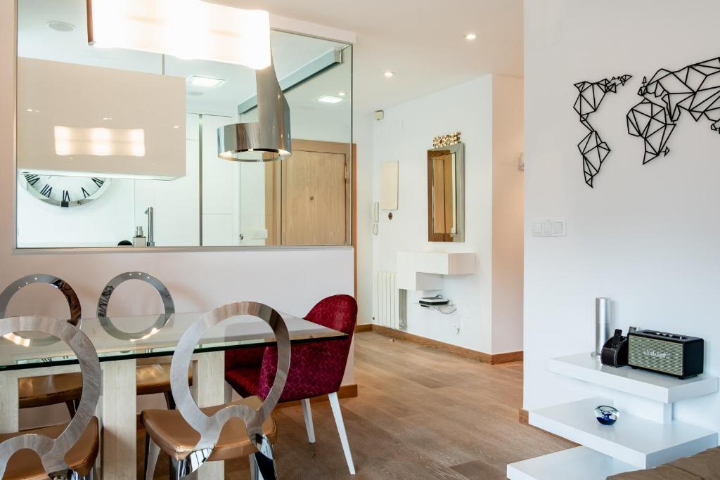 ¿Eres exigente? ¿Te gustan los detalles? ¿Te gusta viajar con tu familia o con tus amigos, pero sentirte como en casa? ¿Te gusta disfrutar de la ciudad, pero también poder tener la libertad de cenar en casa, de ver tu serie favorita en Netflix o poder estar cómodo leyendo un libro? ¿Valoras el gusto y sentirte cuidado? Pues no busques más, has encontrado tu hogar en Salamanca. Recién reformada en el 2019. Diseñada y pensada como si fuese una vivienda habitual exclusiva, pero con la vocación de dar el mejor servicio a nuestros clientes. Todo con las mejores calidades y el diseño que hará que te sientas en el ambiente más agradable. Habitación principal con cama de 150 cm y baño incorporado, la segunda habitación con cama nido de 90 cm, posibilitando así, una cama, dos camas o una de matrimonio de 180 cm. Cama supletoria o cuna bajo disponibilidad. Con plaza de garaje, Smart TV de 49", altavoz Marshall, cocina de diseño con equipamiento insuperable, tabla de planchar, plancha, albornoz, champú, gel, acondicionador, toallitas desmaquillantes, secador, planchas de pelo Ghd, juegos de mesa, libros, calefacción, aire acondicionado en todas las habitaciones, wifi, Netflix... .