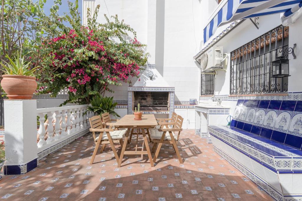 Mi Casa está en una pequeña zona residencial compuesta de aproximadamente 20 casas en Caleta de Vélez y es el alojamiento ideal para unas vacaciones relajantes. La casa, que está rodeada de hermosas plantas mediterráneas, consta de un salón-comedor con sofá cama (avisa al propietario con antelación si quieres utilizarlo), una cocina muy bien equipada con lavavajillas, 2 dormitorios (uno con 2 camas individuales) así como un baño, por lo que en ella se pueden alojar 4 personas. Entre los servicios adicionales se incluyen Wi-Fi, una lavadora, aire acondicionado y televisión por satélite. En su área exterior privada, encontrarás un jardín, terrazas (abiertas y cubiertas) con una sombrilla y una barbacoa. Relájate aquí en los cálidos días de verano y sumérgete en la lectura de un buen libro. En el área exterior compartida, también encontrarás una piscina y una ducha exterior. La piscina sólo está abierta durante la temporada de verano, del 15 de mayo al 15 de octubre. A 8 minutos a pie hay un bar, y a aproximadamente 15 minutos andando encontrarñas más tiendas, bares, restaurantes y cafeterías. El supermercado más cercano está a 12 minutos a pie (1 km), y en 15 minutos caminando llegarás a la playa de Caleta de Vélez, donde podrás relajarte en la arena y tomar el sol. El parque acuático Aquavelis está a 9 minutos en coche de la propiedad (4,1 km). Además, se puede llegar al centro de Málaga en coche en aproximadamente 37 minutos en coche, y al aeropuerto de Málaga en 39 minutos (51,4 km). Las sábanas y las toallas están incluidas en el precio. Respeta la paz y la tranquilidad del vecindario. Las fiestas están prohibidas y no debe haber ruido después de las 23:00.