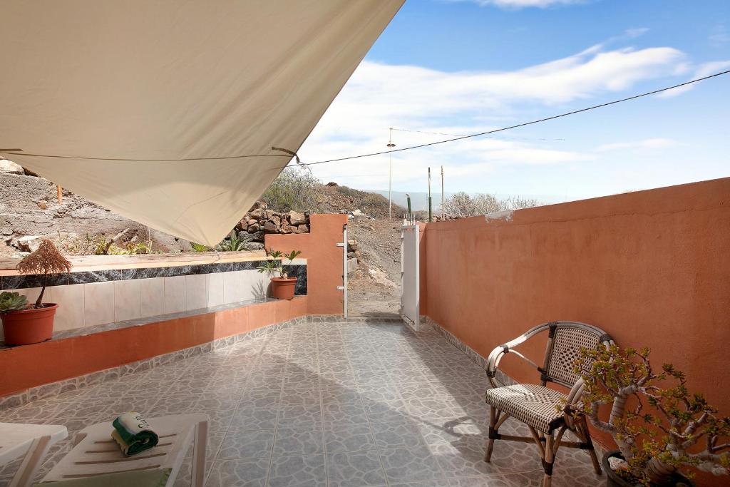 ¡Atención excursionistas y escaladores! Lejos del turismo de masas y sin embargo cerca del aeropuerto sur (aprox. 25 km) o la capital Santa Cruz (aprox. 35 km) La mini casa, ubicada directamente en las terrazas de una finca de frutas y verduras y justo en la entrada de la zona de escalada y senderismo de Tamadaya, ofrece una vista única al mar y está ubicada en las afueras de Arico Viejo. Tiene conexión WIFI fibra optica de 300mb
