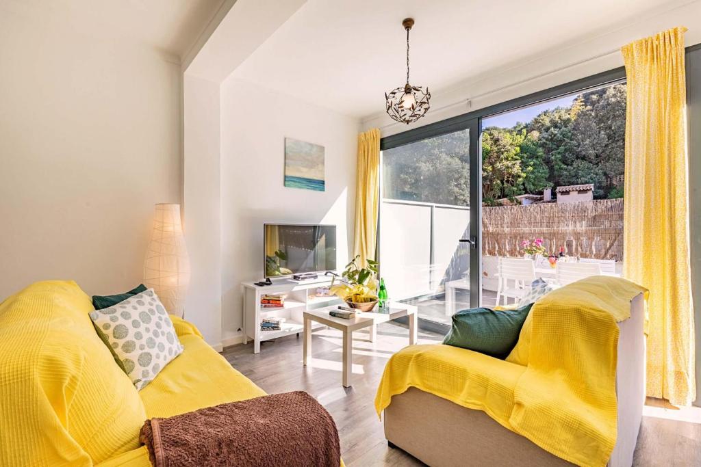 El Villecaba ofrece alojamiento con aire acondicionado y balcón en Cala en Blanes. Este apartamento ofrece vistas al jardín, piscina, jardín y WiFi gr