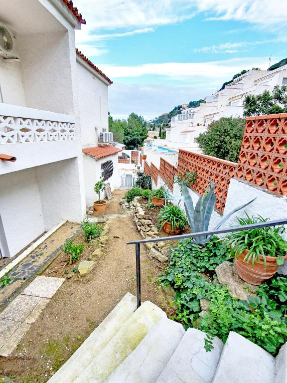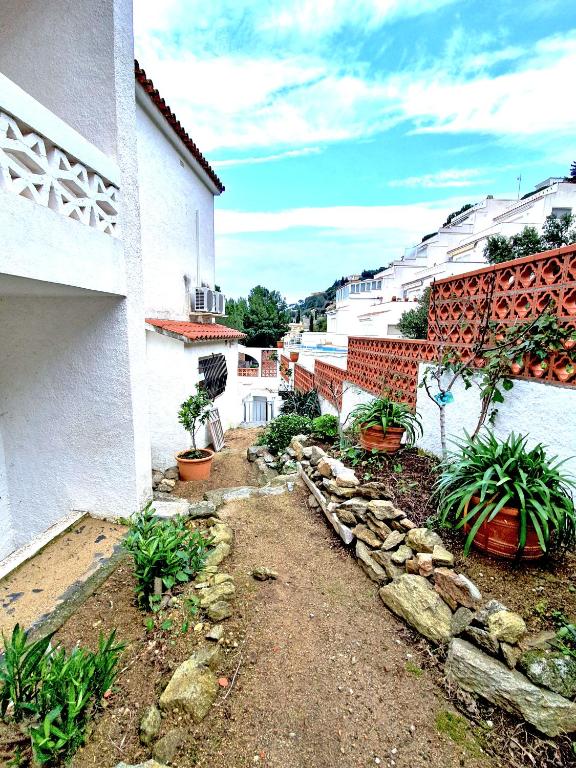 Aparment with 52 m2 capacity 6 people private pool for only two apartments 1 double room with double bed of 140 cm 1 room with one single bed of 90 cm and two bunkbeds garden private barbecue living view direct to the pool terrace to eat outside private parking outside in the street kitchen equiped: cuttlery, dishes, pans casseroles, microwave. vacuum cleaner bath with shower sofa bed with 135 cm in the living fans tv sat airconditioning on the living beach at 2km iIs a very functional apartment at 10 m from the center of Roses, is sited in a very calm street nice for families and people who are looking for a relaxing time and place to be and spend her time of holidays Is calm quiet and surounded by trees gardens and calm houses. the apartement belongs to a villa with pool. in on the ground floor with indpendent entrance. private pool for only two apartments garden private barbecue private parking outside in the street