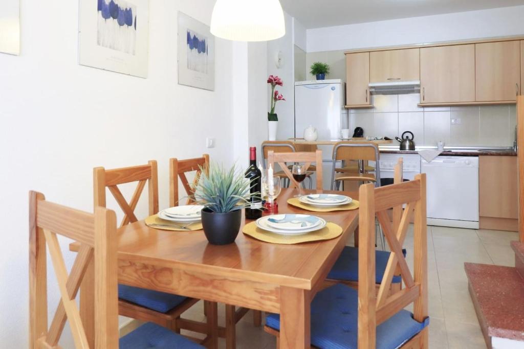 Luminoso y confortable apartamento, ubicado en un tranquilo complejo residencial con piscina comunitaria y a 30 mt de la playa. Ideal para familias o grupos de amigos que busquen disfrutar de una autenticas vacaciones en la costa de Tenerife. El apartamento cuenta con Wifi gratis. Dispone de 3 habitaciones, 1 baño, salón comedor y una moderna cocina con utensilios y menaje para 5 personas. Además, tiene 3 terrazas, una de ellas con barbacoa y, desde las cuales, podrá disfrutar de unos bonitos amaneceres y atardeceres. Para comodidad de los huéspedes, cuenta con plaza de aparcamiento. El edificio tiene ascensor. La vivienda está completamente equipada con todo lo necesario para una cómoda estancia: lavadora, horno, microondas, lavavajillas,Tv, wifi gratis, toallas de baño, toallas de playa y ropa de cama. A pocos minutos andando hay supermercados , restaurantes, cafeterías, farmacia, el centro de saludo y servicios médicos.