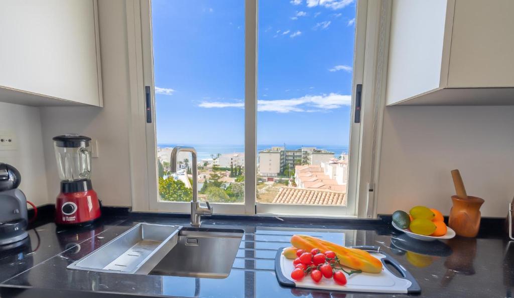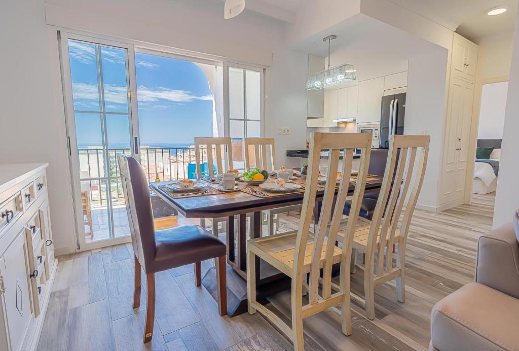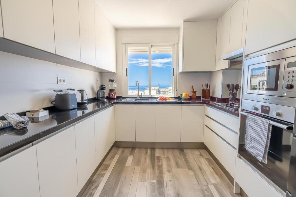 El apartamento tiene 3 dormitorios, 2 baños, ropa de cama, toallas, TV de pantalla plana, zona de comedor, cocina totalmente equipada y patio con vistas al mar.
