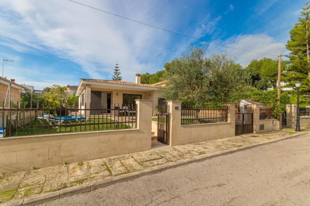 Casa de playa en Platjas de Muro para 6 personas más bebés, 3 habitaciones dobles, 1 baño, calefacción, Wifi-Internet gratuito, jardín con piscina infantil, barbacoa y terraza, a solo 40 metros de la playa de arena, en Platjas de Muro