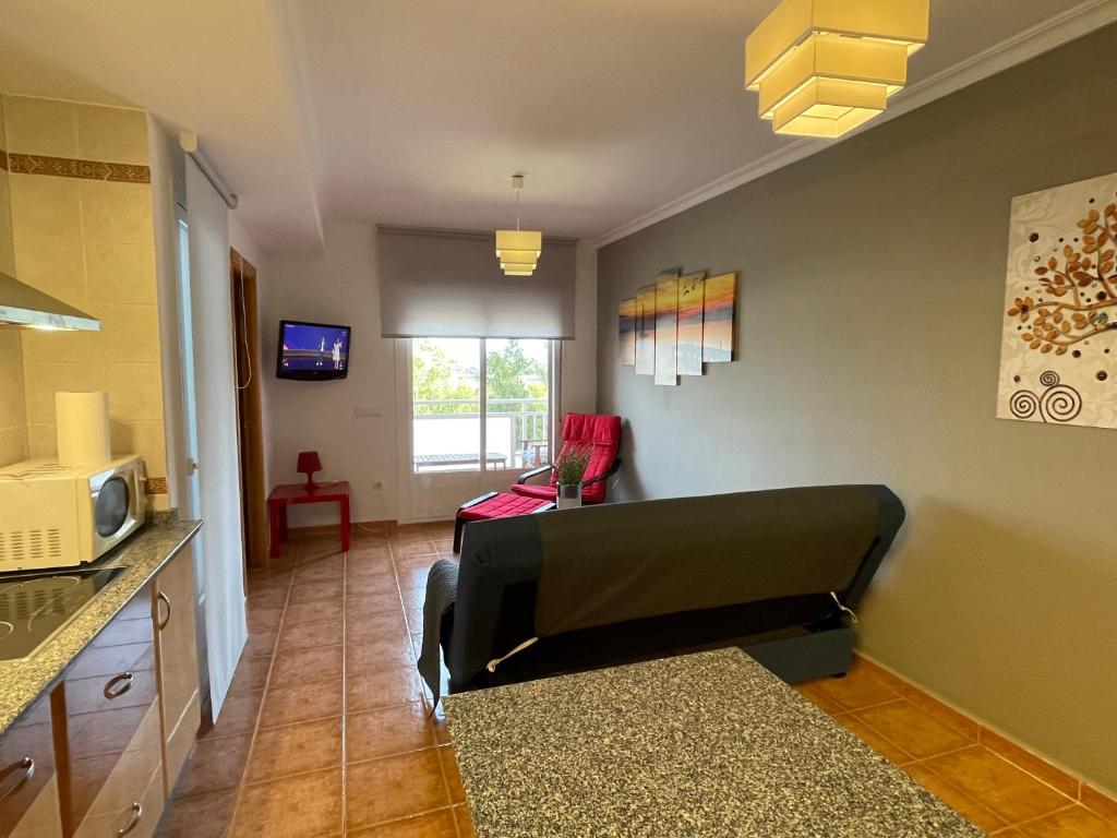 Este apartamento cuenta con 1 dormitorio, cocina con microondas y nevera, TV de pantalla plana, zona de estar y baño con bidet.