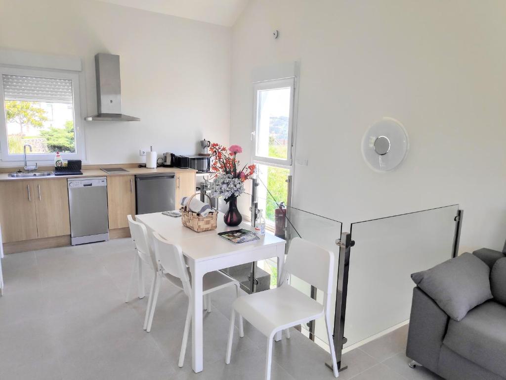 El Cantos do Coido ofrece vistas a la ciudad y alojamiento con terraza y patio a pocos pasos de la playa O Coido. Esta casa tiene jardín, zona de barb