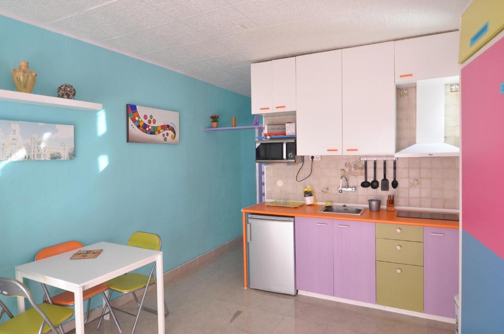 La cocina está equipada con microondas, nevera, tostadora y cafetera.
