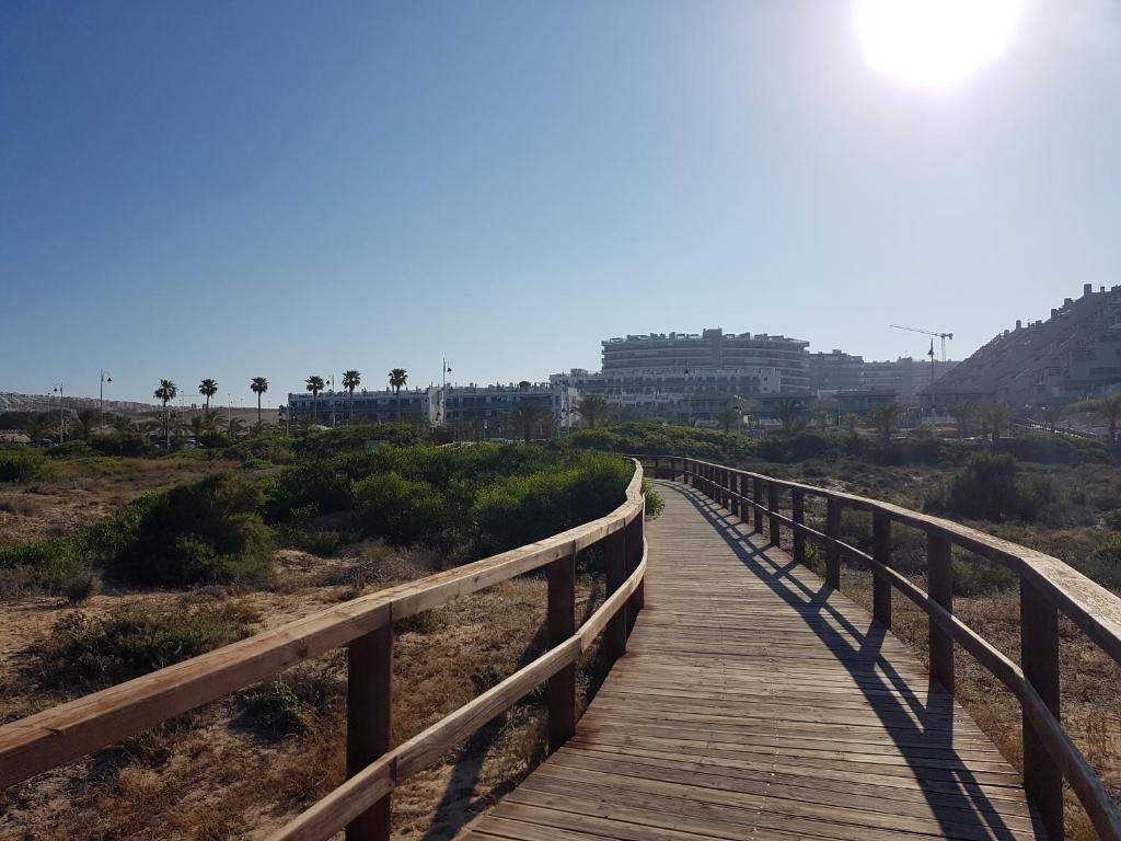 Esta situado al final del paseo maritimo de Arenales del Sol, aproximadamente a 1,2 km del centro de la zona comercial de Arenales del Sol y a 1.5 Km de Grand Alacant, donde podras encontrar todo tipo de establecimientos. Residencial ubicado frente a zona de playa muy animada en periodo estival, con atractivo chiringuito donde se pueden realizar gran variedad de actividades, y donde especialmente los niños lo pasaran en grande.