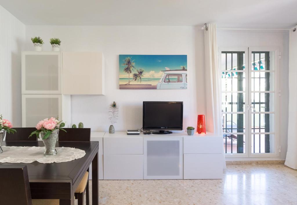 El Sandy Playa Golf Málaga con Parking se encuentra en Málaga, a 400 metros de la playa de Guadalmar y a 500 metros de la playa de Guadalhorce, y ofrece piscina al aire libre y aire acondicionado. Se encuentra frente a la playa y ofrece balcón, aparcamiento privado gratuito y WiFi gratuita. El apartamento tiene terraza, vistas al mar, 3 dormitorios, sala de estar, TV de pantalla plana, cocina equipada con lavavajillas y microondas y baño con ducha a ras de suelo. Se proporcionan toallas y ropa de cama. El apartamento cuenta con baño público. El establecimiento alberga un jardín. El Sandy Playa Golf Málaga con Parking está a 6,1 km del Museo del Automóvil y la Moda y a 8,2 km de la estación de tren de Málaga María Zambrano. El aeropuerto más cercano es el de Málaga, ubicado a 6 km.